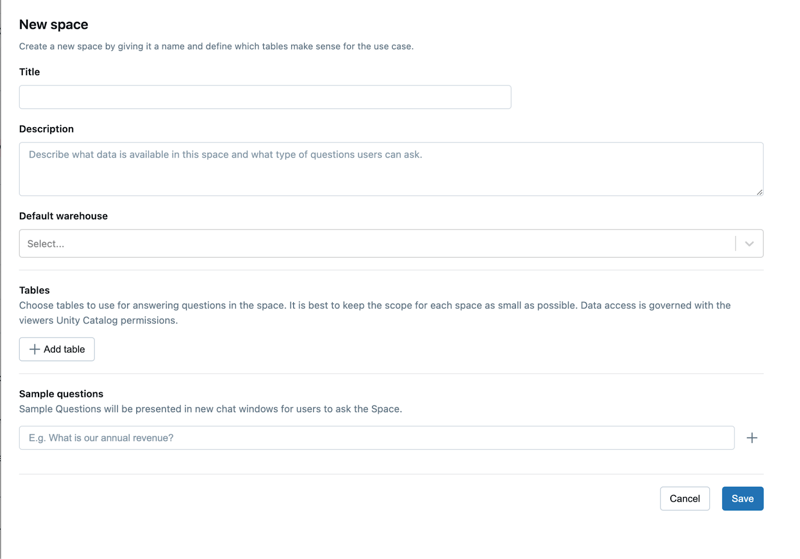 - Once your space is set up, start asking questions in natural language, such as “What are the top-selling products in Q3?” or “How did our customer engagement change over the past month?”